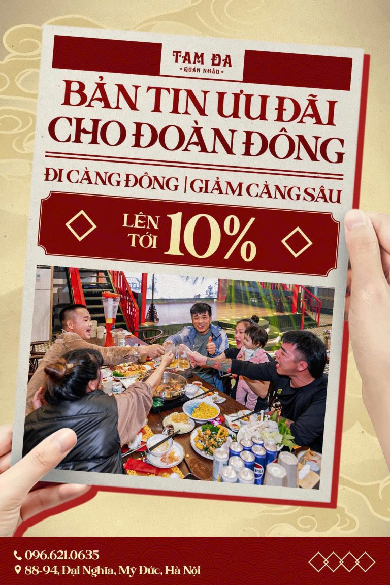Bản tin ưu đãi đoàn đông Một buổi tiệc đâu chỉ là để ăn, mà là khoảnh khắc vui chơi và gắn kết. Tam Đa dành tặng ngay ưu đãi cho đoàn đông cực “hot” để