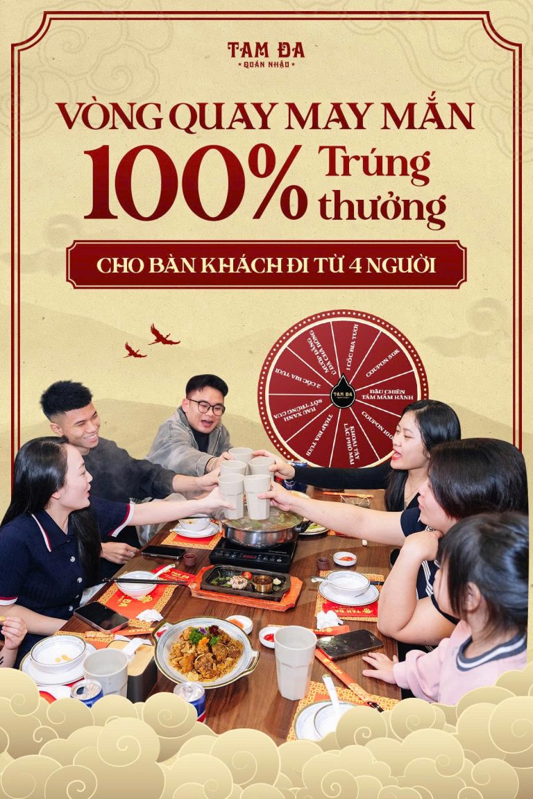 Quay là trúng – Ăn ngon nhận quà cực chất tại Tam Đa Bữa ăn ở Tam Đa nay còn vui hơn gấp bội với Vòng Quay May Mắn 100% trúng thưởng! Chỉ cần đi từ 4 người trở lên, anh em sẽ